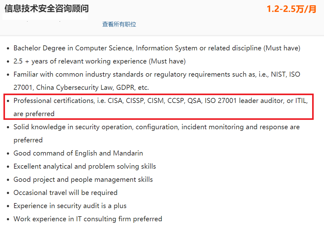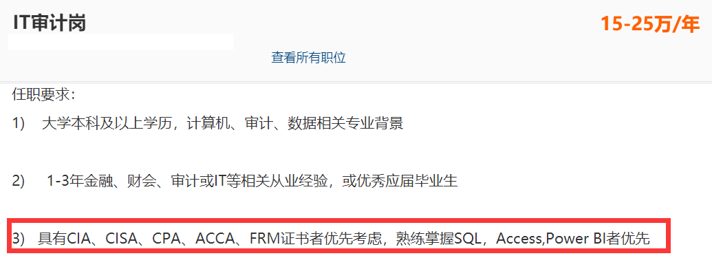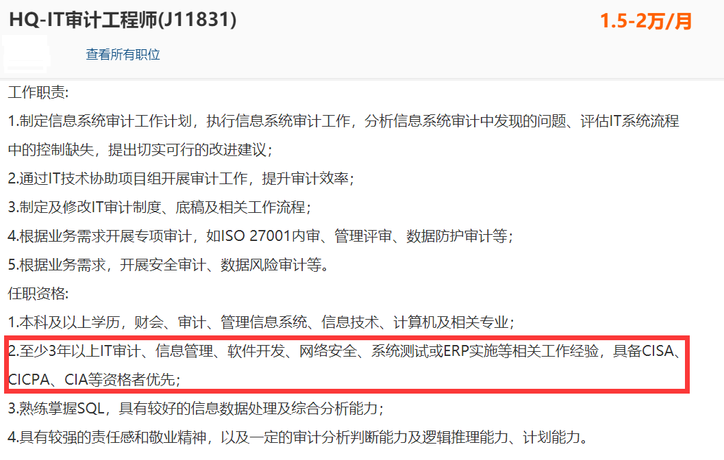 现今,随着信息技术的发展和应用,信息系统审计在各个行业都有着很大的需求,随意点开招聘网站浏览,就能看到职业招聘中拥有CISA证书的人员是具有强大的择业优势。